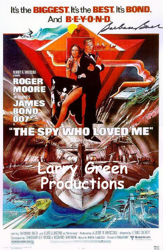 Larry Green Productions is pleased to announce exclusive World Representation of autographed, "THE SPY WHO LOVED ME" movie posters and 8"x10" photos as shown below. All posters and photos are Hand Signed by one of the most popular stars ever to play opposite James Bond 007, MS. BARBARA BACH STARKEY.